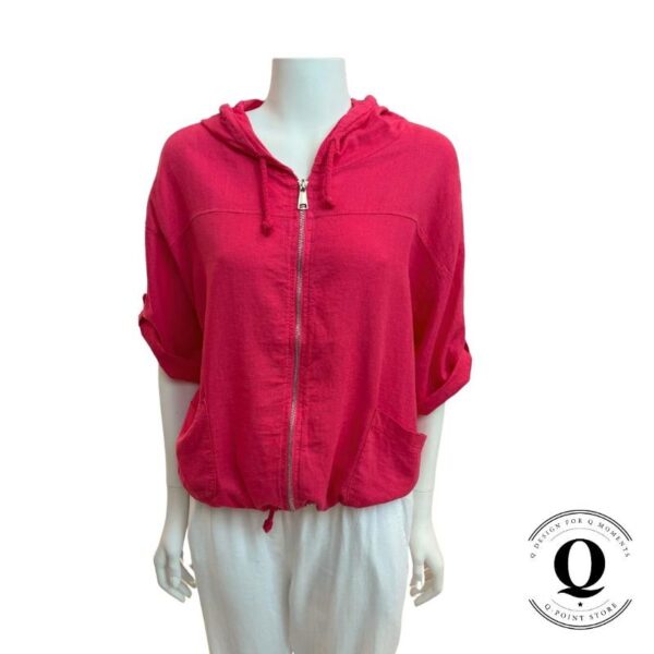 Rento ja tyylikäs huppari kauniissa vadelmanpunaisessa sävyssä tuo väriä ja raikkautta pukeutumiseen. Kevyt ja ilmava materiaali tekee siitä täydellisen valinnan niin arkeen kuin kesäisiin kerrospukeutumisiin.