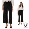 Housuissa on korkea vyötärö ja vajaamittainen, leveä lahje, jotka luovat modernin ja huolitellun siluetin. Edessä oleva koristevyö tuo ilmeeseen viimeistellyn yksityiskohdan, kun taas takana oleva joustava rypytys lisää käyttömukavuutta ja parantaa istuvuutta.