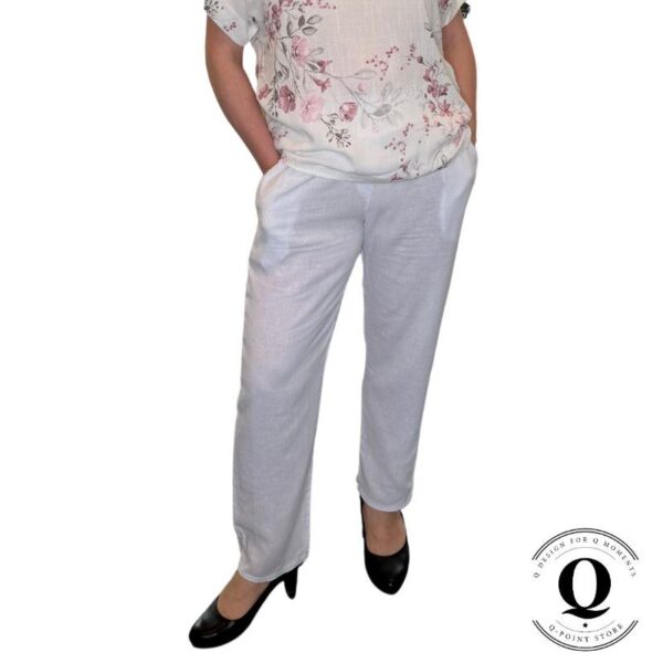Ihanan kevyet ja hengittävät Wetzel kesähousut saksalaiselta Anna Menotti -merkiltä. Raikas valkoinen sävy tekee housuista täydellisen valinnan kesän valoisiin päiviin ja helposti yhdisteltävän monenlaisiin yläosiin.
